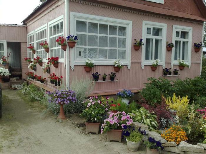 Растительности отводится главное место в оформлении палисадника. Даже если он представляет собой небольшую мощеную площадку, без растений все равно не обойтись. Их высаживают в контейнеры и расставляют вдоль стен, заборов, на крылечке, подвешивают на крючки, вбитые в стену дома.