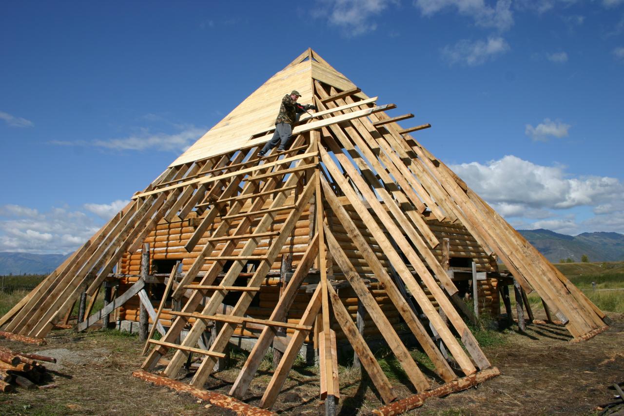 - Каркас. Остов конструкции, его собирают из жердей, больших веток или досок.
