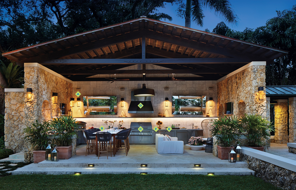 Если вы хотите пользоваться летней кухней днем и ночью, рассмотрите возможность установки нескольких светильников. Освещение поможет вам увидеть, что вы готовите на гриле, и создаст дополнительный уровень комфорта для ваших гостей. При установке освещения убедитесь, что вы используете наружные светильники и убедитесь, что ни один из проводов не подвергается воздействию элементов. При выполнении электромонтажных работ на открытом воздухе соблюдайте правила техники безопасности.