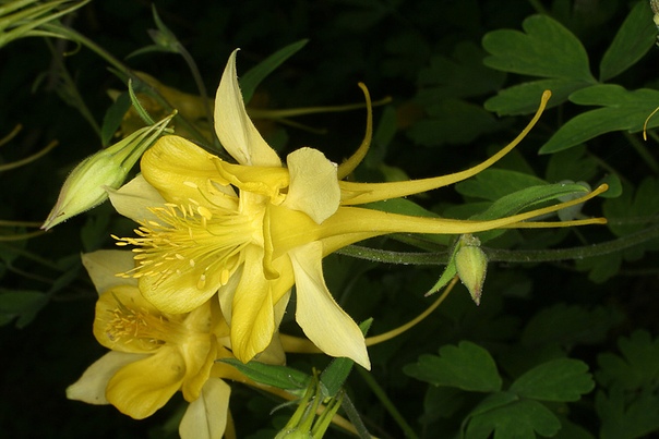 Желтая аквилегия в начале лета имеет множество обращенных наружу крупных ярко-лимонно-желтых цветков с длинными шпорцами. Также из него получаются отличные цветы для срезки.