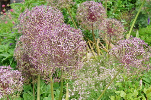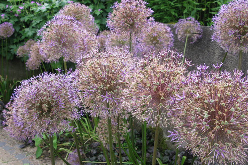 Огромные 8-10-дюймовые шары фиолетово-розовые с серебристым отливом. Christophii цветет с конца весны до начала лета, высушенные семенные головки сохраняются в течение нескольких месяцев. Идеальный выбор для альпинариев или дорожек, где цветами можно любоваться с близкого расстояния.