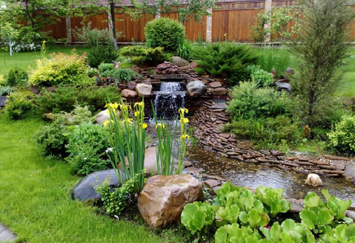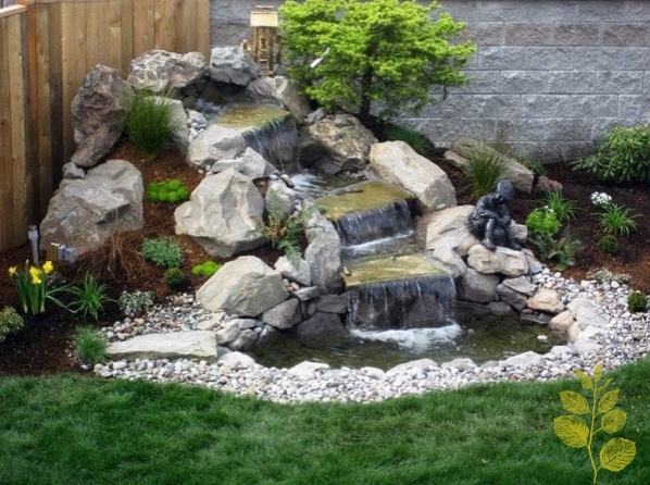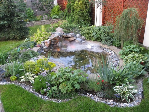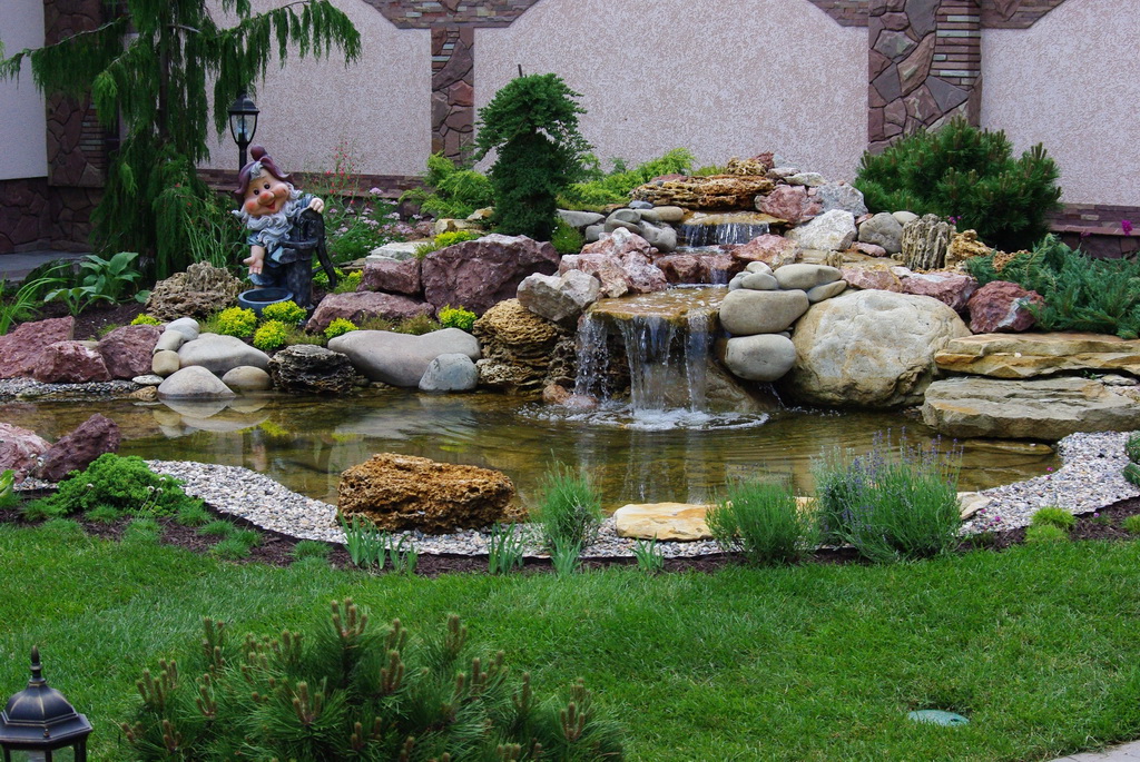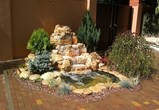 Хорошо смотрится искусственный водопад с несколькими уровнями каскада. Удачным сочетанием будет прудик с фонтаном.