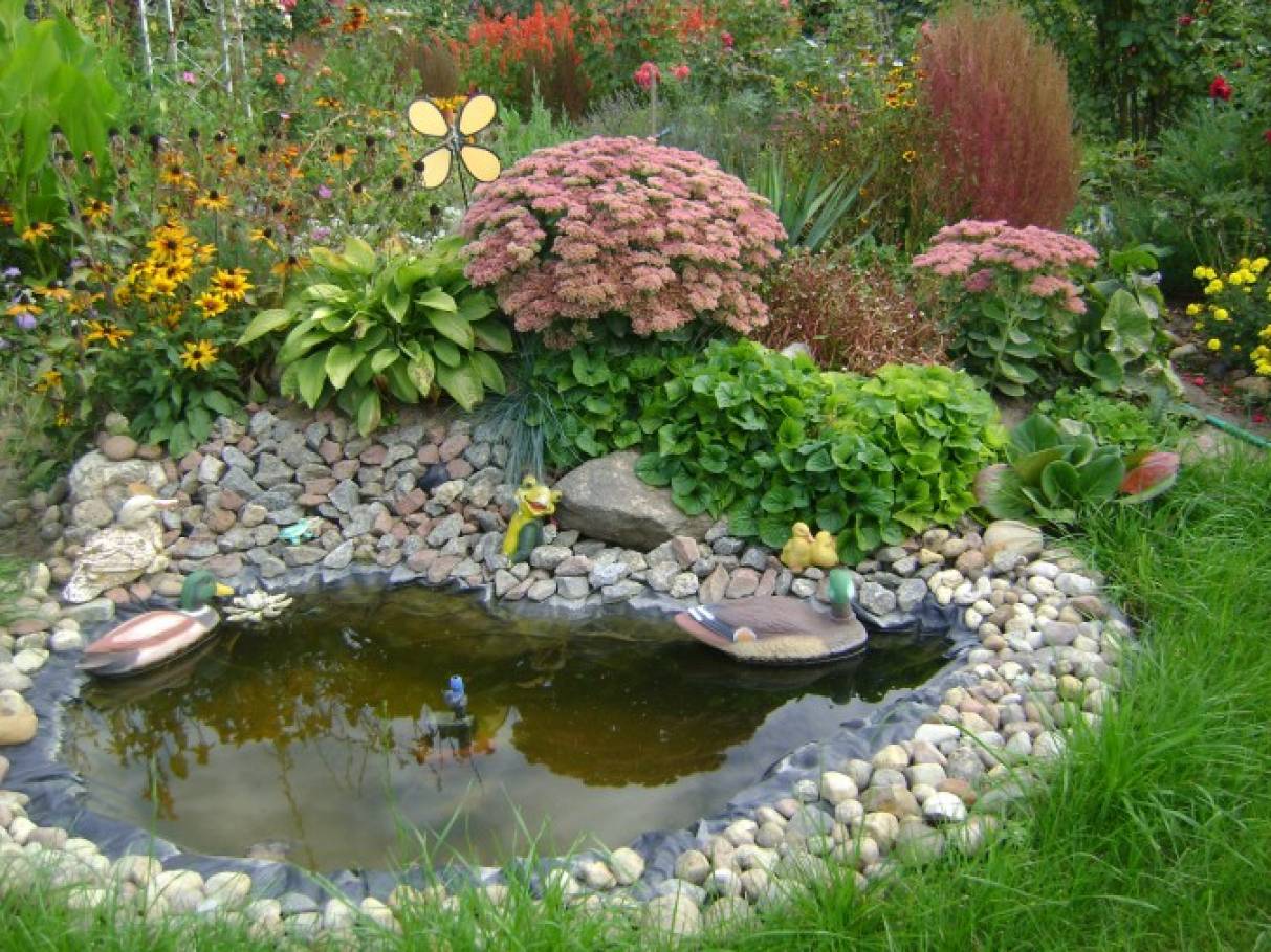 - Прибрежную полосу декорируют гравием, галькой. Для подсыпки необходимо иметь запас не менее двух ведер;