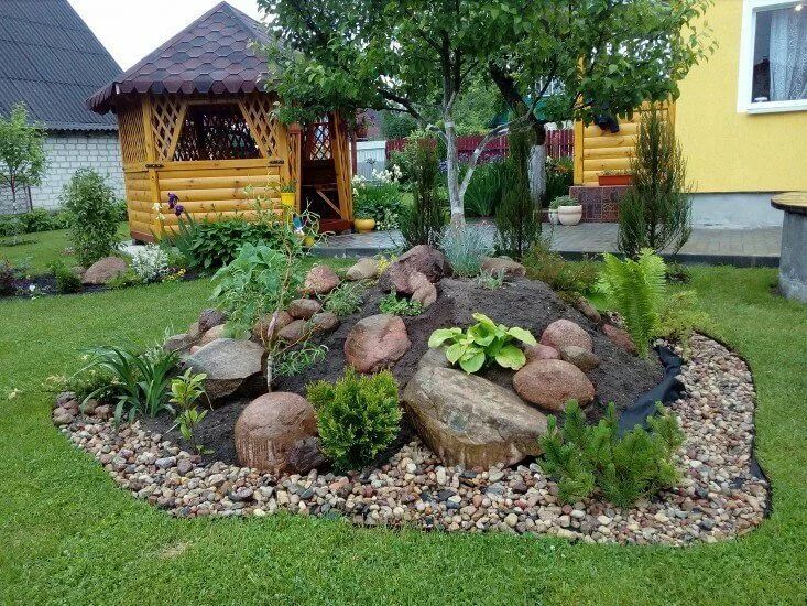 Камни для альпийской горки должны гармонично смотреться на вашем участке. Когда участок небольшой, то камни следует брать небольших размеров, если же вы располагаете большой территорией, то уместно будет использовать крупные, массивные валуны.