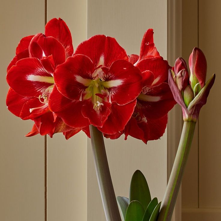 90 010 Нежные красивые крупные красные цветы амариллиса на подоконникеPREMIUMАмариллис гиппеаструм один из самых красивых комнатных цветовPREMIUM