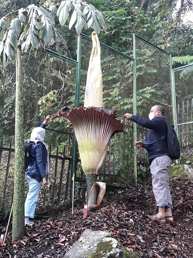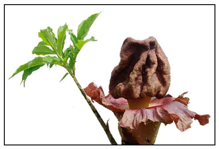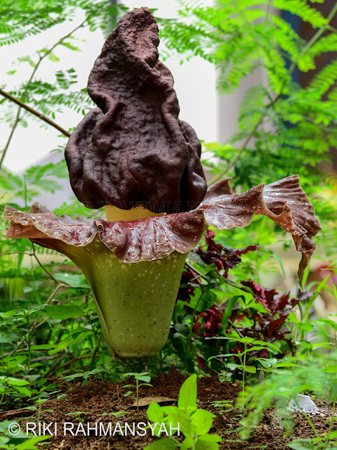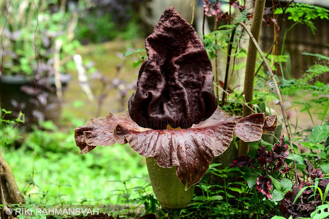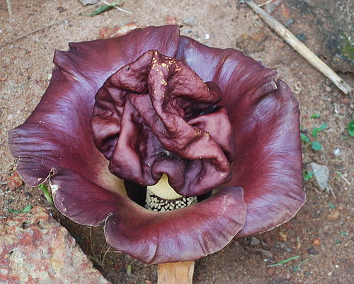 На Суматре можно встретить еще один огромный цветок — (Amorphophallus titanum). Этот цветок выглядит, как огромный початок, обернутый фиолетовым листовидным придатком, как покрывалом. Такой початок может возвышаться на три метра и распространять вокруг себя запах, похожий на вонь тухлых яиц и тухлой рыбы.