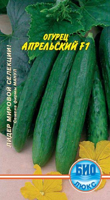 Апрельский — гибрид огурца раннего срока созревания, начинающий плодоносить через 40 — 45 дней от появления всходов. Был получен на Овощной опытной станции им. В.И. Эдельштейна (г. Москва). Оригинальные семена выпускает селекционно-семеноводческая фирма Манул, сотрудники которой являются авторами этого гибрида. В 1977-м году сорт был включен в госреестр РФ. Допущен к использованию в Северном, Центральном, Центрально-черноземном, Средневолжском, Северо-Западном, Волго-Вятском и Северо-Кавказском регионах России. Лучше всего данная культура удается при культивировании в защищенном грунте (парники, пленочные теплицы и т. д.). А также подойдет для выращивания в домашних условиях и на балконе.