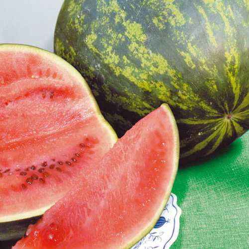 Эти продолговатые арбузы для пикника достигают веса 20-35 фунтов при полной зрелости. Кожура темно-зеленая со светло-зелеными полосами, а мякоть темно-желтая с черными семенами.