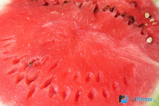 Цвет мякоти придают особые вещества – каротиноиды, которые присутствуют и в других цветных плодах: помидорах, моркови, перцах, яблоках. Красный и розовый цвет обеспечивается ликопином. Он также защищает мякоть от ранних окислительных процессов и ультрафиолетовых лучей.