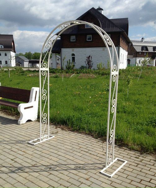 - металлическая арка – оптимальный вариант, она прекрасно сочетается с разными архитектурными стилями, надежна и практична.