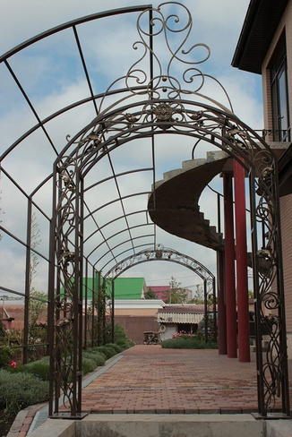 Арку из металла можно сделать и самому, при наличии необходимого инструмента. Этот материал позволяет воплотить в жизнь самые изысканные и причудливые фантазии дизайна в жизнь.