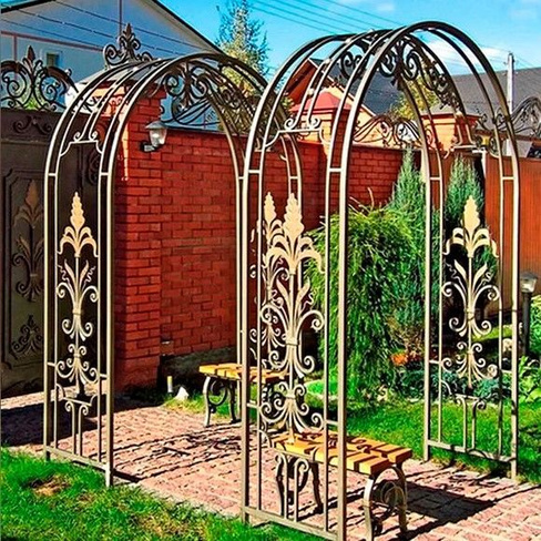 | Сборные металлические садовые арки | Популярность подобных изделий обусловлена очень высокой прочностью и долговечностью, может быть использован круг, квадрат, шестигранник, арматура, полоса или кованые элементы.![]() |