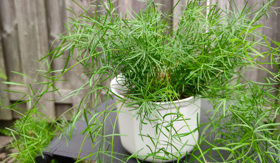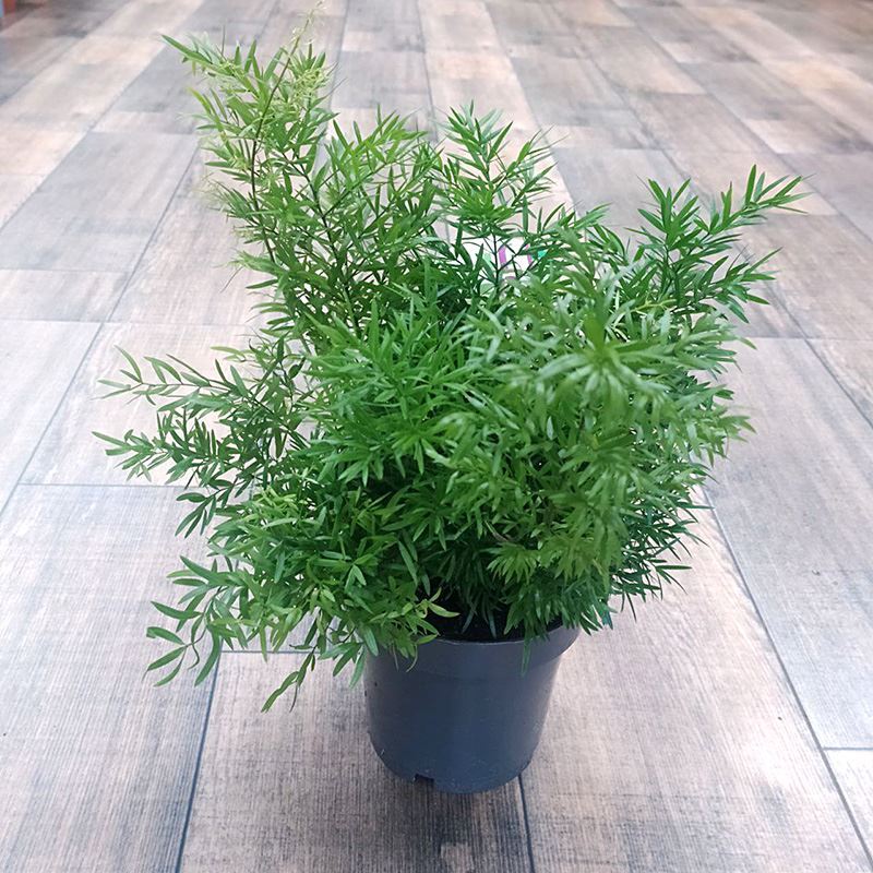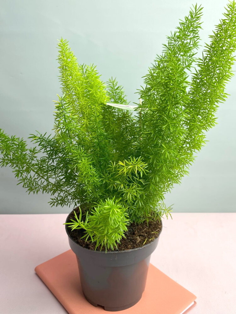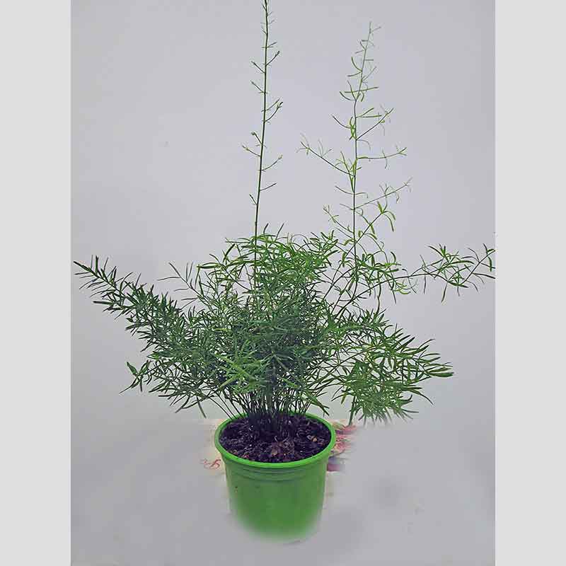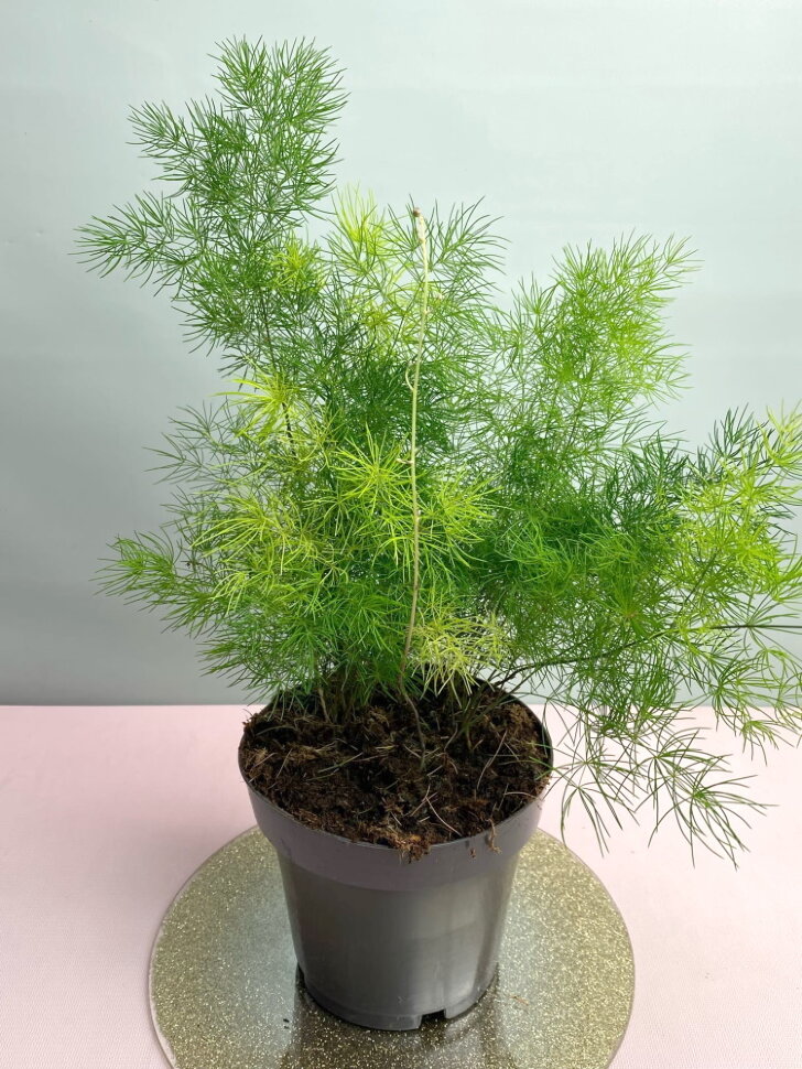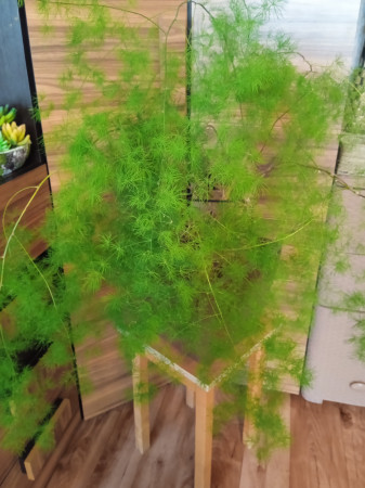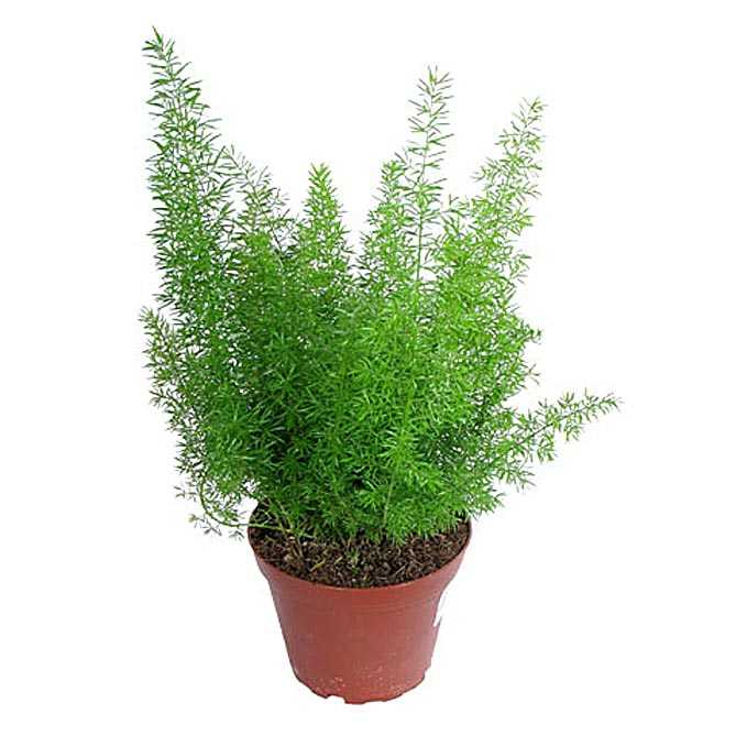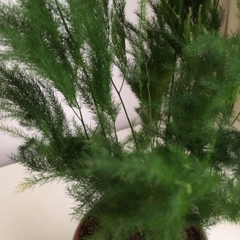 Строением и цветом очень напоминает можжевельник. - Аспарагус Плюмозус или перистый – один из самых известных видов. У него длинные и тонкие, слегка вьющиеся побеги, стремящиеся к росту в горизонтальной плоскости, что делает его чем-то похожим на папоротник, но с очень мягкими и нежными иголочками вместо листьев.