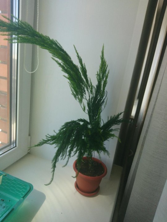 Освещение. В природе аспарагус растет в тени тропических деревьев, поэтому под прямыми солнечными лучами будет сохнуть. Свет должен быть ярким, но рассеянным. В темном помещении кладодии становятся желтоватыми и блеклыми. Горшок ставят в глубине южной комнаты или на подоконник восточного (западного) окна. В северном помещении света будет мало и придется использовать подсветку.
