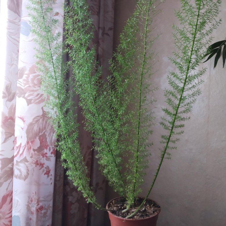 Полив. Поливать аспарагус нужно часто и обильно. Воду хорошо отстаивают, чтобы избавиться от хлора. Земля не должна просыхать даже на поверхности, но и застой воды не допускают. При нехватке жидкости в почве листья аспарагуса желтеют и опадают. При понижении температуры поливы сокращают, чтобы не развился грибок.
