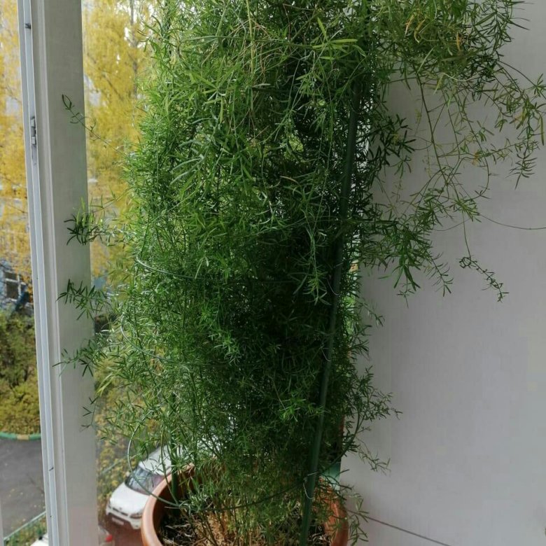 Садовый спаржевидный аспарагус – это многолетний полукустарник с длинными стеблями, вырастающими за сезон до 3 метров в длину.