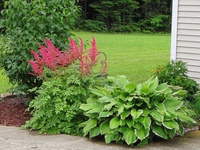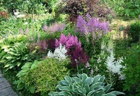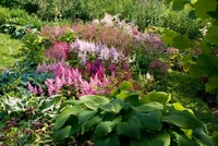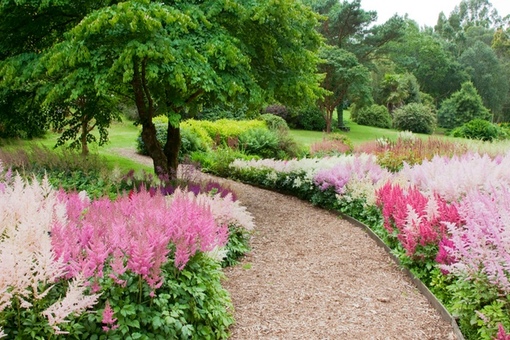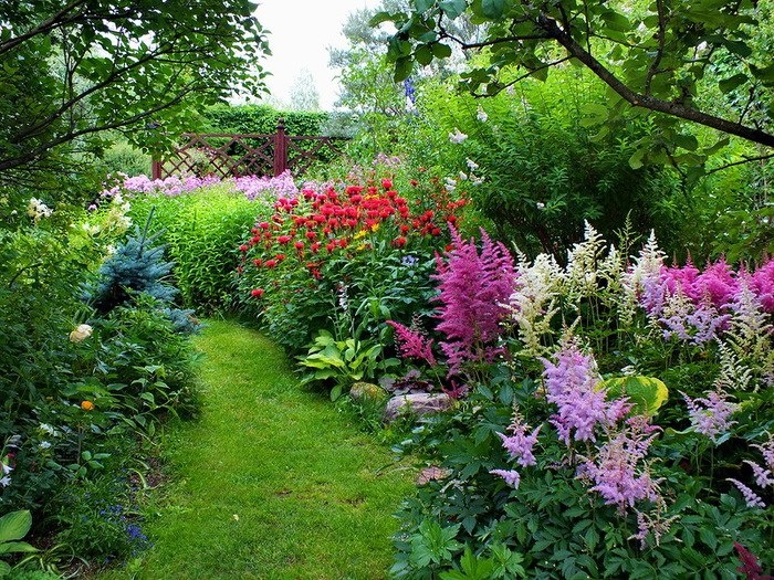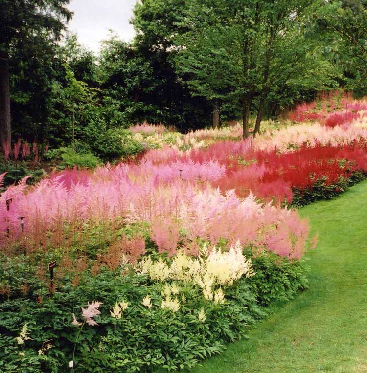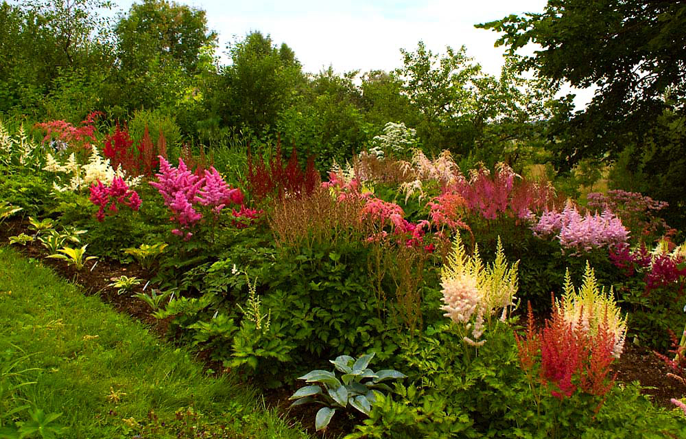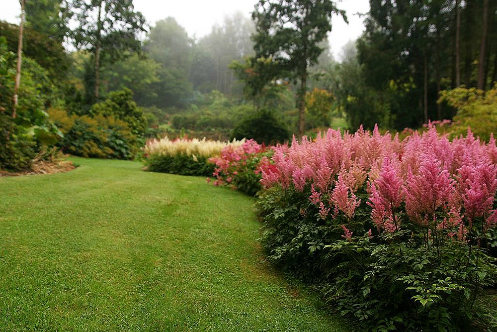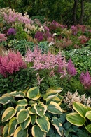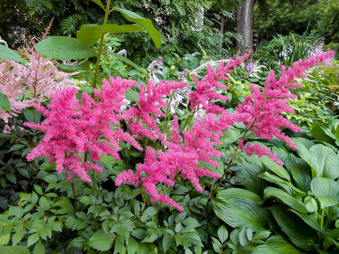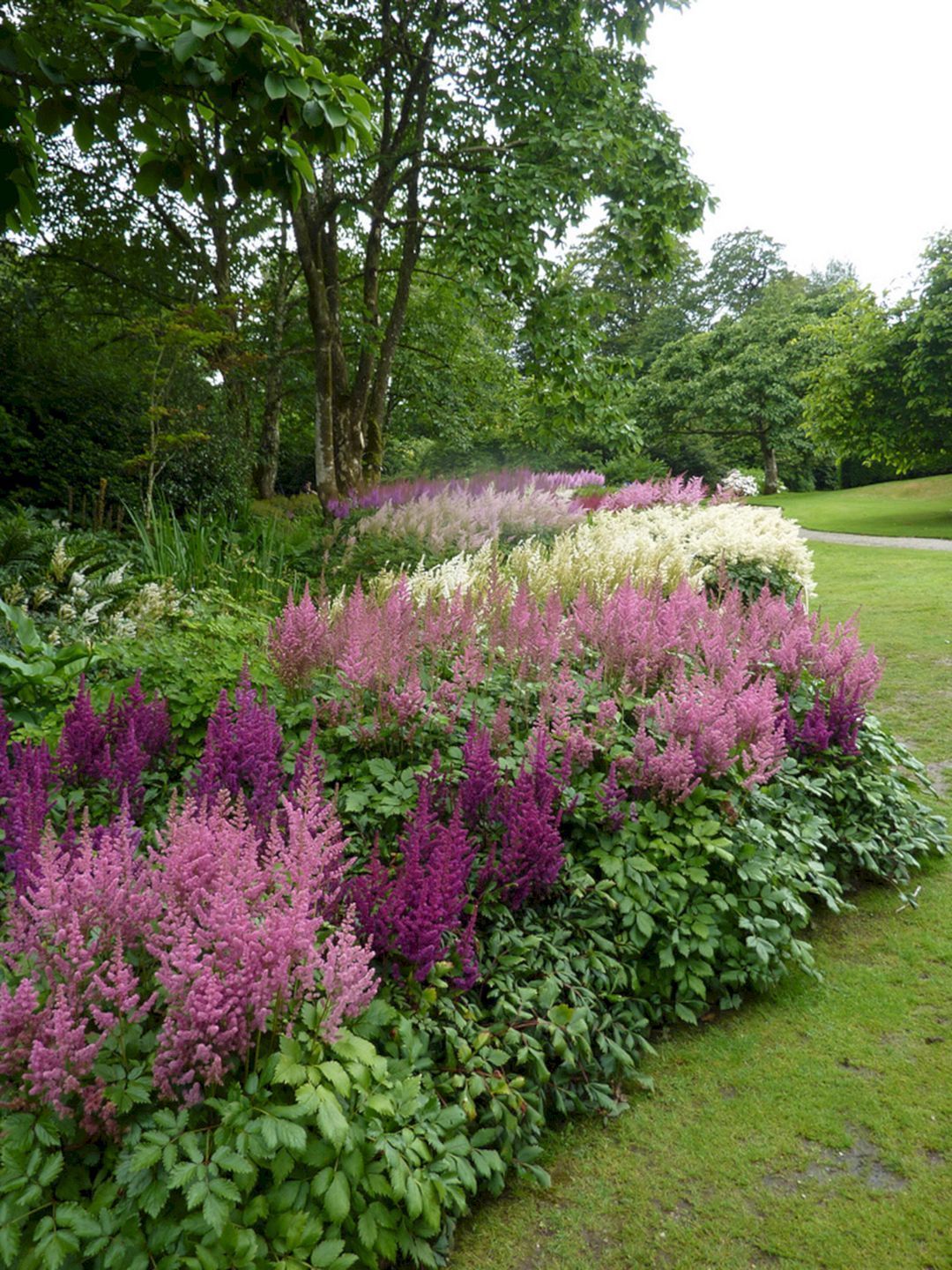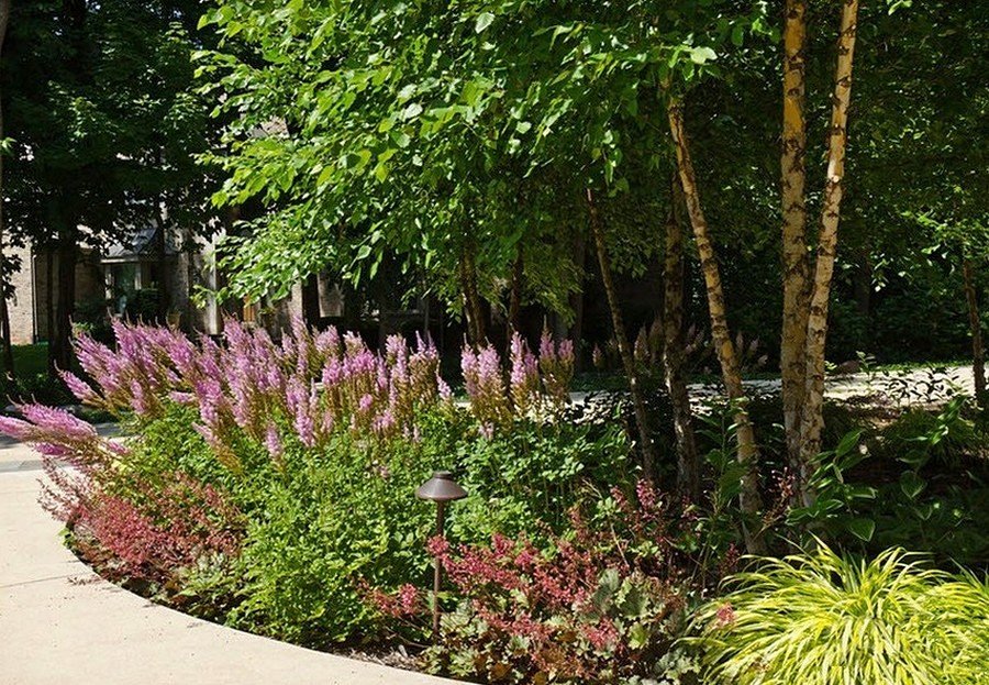 Несмотря на то, что по краям могут преобладать взмахи хосты и бруннера, добавление красочных тенелюбивых многолетников , таких как астильба, заставит эту местность запеть.