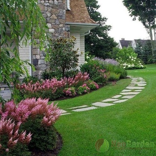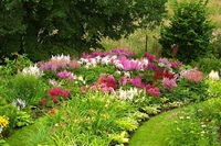 Высокие сорта астильбы могут прекрасно солировать среди газона. Среднерослые и низкие сорта используют в бордюрах или в теневых цветниках.
