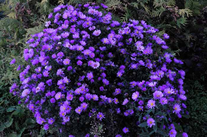 Буйно цветет осенью, сплошной лиловой шапкой, дополняет осеннее цветение сада.