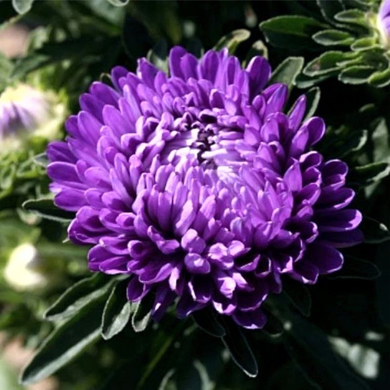 - Хризантемовидная. Один из самых популярных срезочных видов астры садовой, на самом деле являющийся лишь ее дальним родственником — каллистефусом китайским. Это растение достигает 65 см в высоту, радует объемными полушаровидными соцветиями до 10 см в диаметре и обилием окрасок — от алой и бордовой до белой, розовой, голубой.
