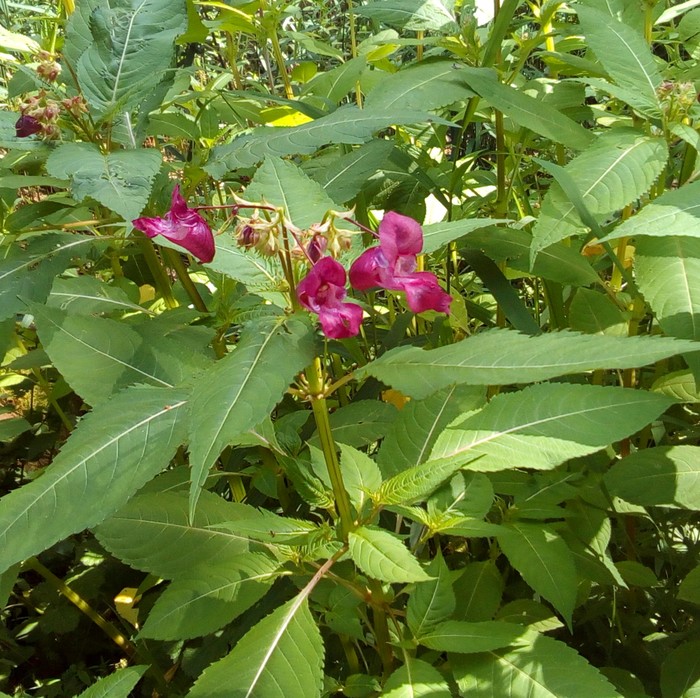 Тенистые и влажные уголки сада можно оформить бальзамином – сочным травянистым растением с небольшими, но яркими цветами, внешне напоминающими ирисы. Самый простой способ «поселить» это растение на дачном участке – это принести его из леса, где дикорастущей недотроги (второе название бальзамина) всегда много, особенно на сырых опушках и по берегам водоёмов. Вы сразу отличите её заросли от других – по вытянутым листьям с остроконечными зубчиками, тёмно-сиреневым и фиолетовым лепесткам соцветий со шпорцами, мощным и тугим стеблям и густоте роста.