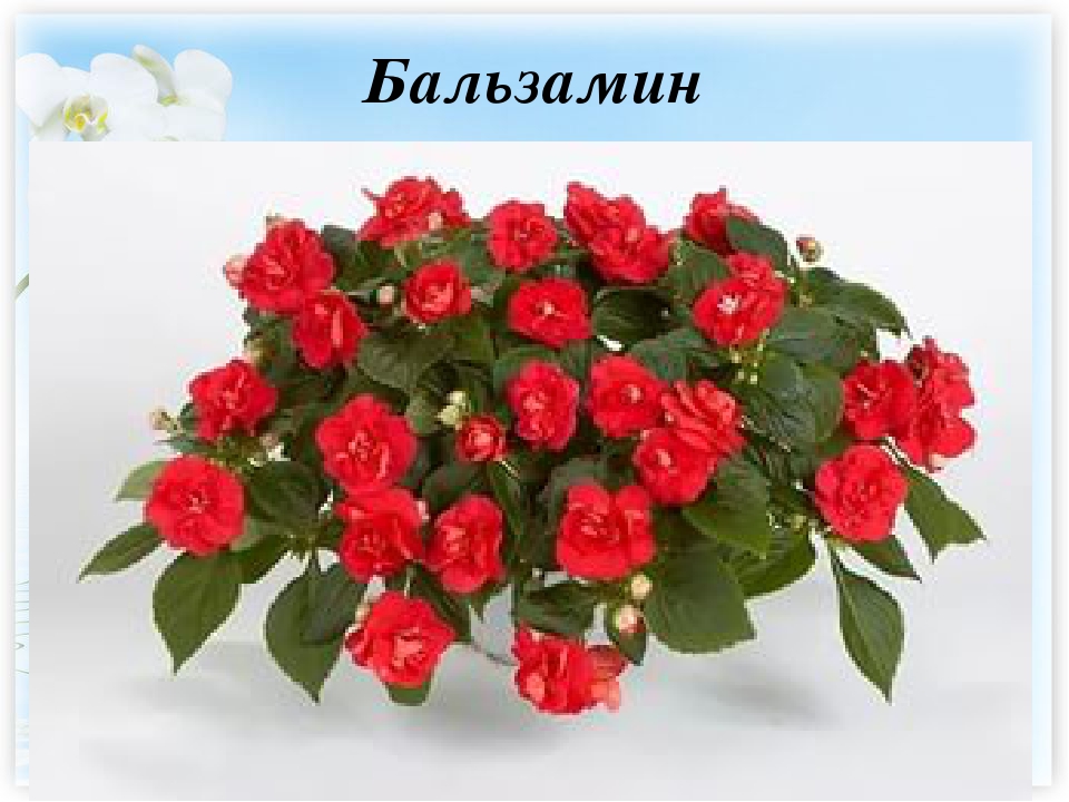 В народе бальзамин имеет много прозвищ: звездочка, огонек, Ванька-встанька, мокрый Ванька, вечно цвет. Бальзамин растет, как в горшке на подоконнике, так и прекрасно себя чувствует на садовом участке. Его род насчитывает около 400 разновидностей однолетних и многолетних растений. Многочисленная разновидность Бальзаминов в своем уходе не требует больших затрат сил. Одомашненные на подоконнике цветет круглый год, а остальные расположились на приусадебных участках и цветниках.