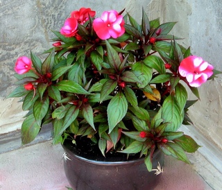 Бальзамин зацветет, когда корневая система разрастется до таких размеров, что полностью заполнит все пространство горшка, пронизав весь земляной ком. Таким же образом нужно пересаживать и фиалки. Если посадить бальзамин в большой вазон, то он потратит свои силы, заполняя корнями весь объем, а на цветение сил не хватит. Можно в одном горшке вырастить букет из бальзаминов разного цвета. Для этого берутся черенки разной окраски и высаживаются уже в гораздо больший по размеру горшок. Они прекрасно уживутся в одном горшке, дополняя друг друга.