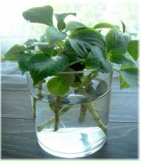 Срезанные черенки в длину должны быть примерно 8–10 сантиметров. Для укоренения используется увлажненная земля, перемешанная с песком, а также можно взять простую воду. Они дают корни достаточно быстро, всего через несколько суток. Затем черенки сажают в не очень большие горшочки и через пару месяц они уже вполне могут начать цвести.