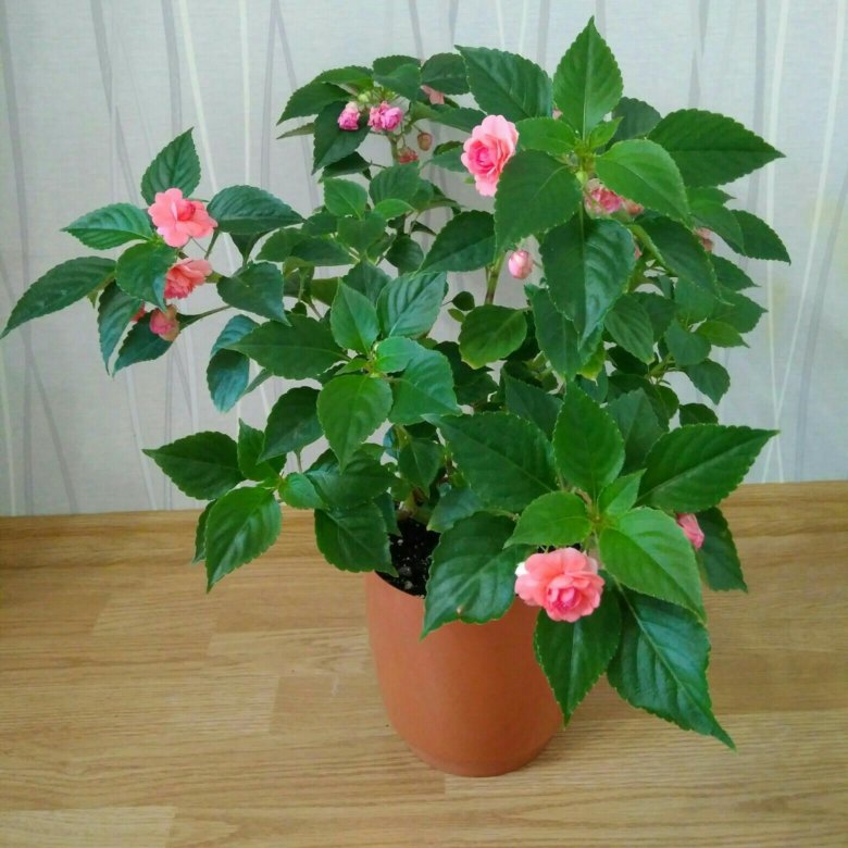 Розовый бальзамин не особо любит домашние условия: в доме он будет расти лишь в высоту, пытаясь дотянуться до источника света.