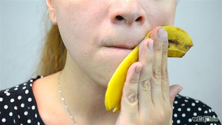 кусочком кожуры от спелого банана кожу лица, стараясь втирать в нее