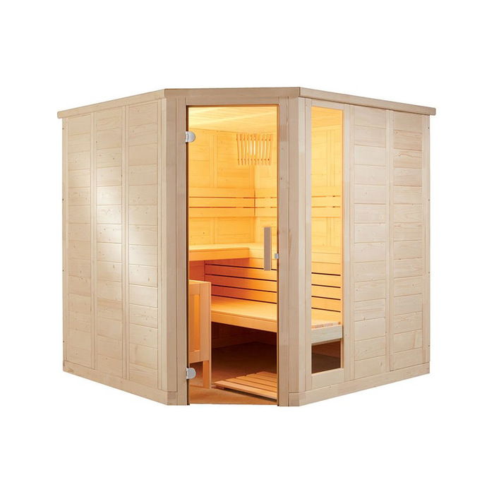 Финская сауна – это деревянное помещение, с деревянными полками и каменной печью. Чаще всего помещение обшивается ольхой, кедром, осиной, сосной. Рядом с печью стены обычно обшивают ольхой. Это связано с тем, что данная разновидность древесины не гниет и не подвержена воздействиям высоких температур. Хвойные породы деревьев позволяют наполнить помещение уникальным ароматом. Обязательная часть современных финских саун: