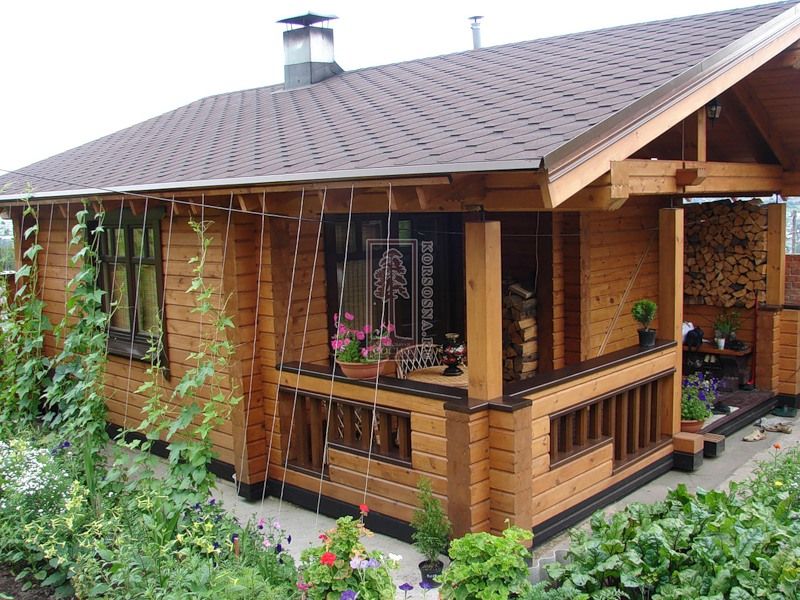 Баня из сруба с верандой