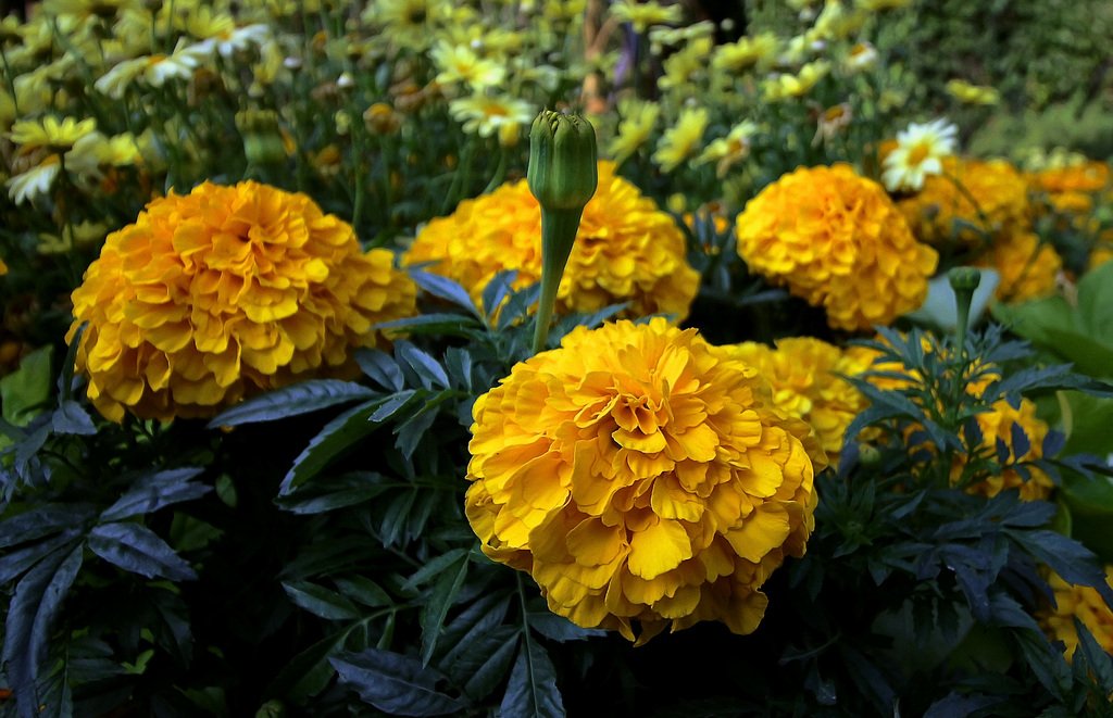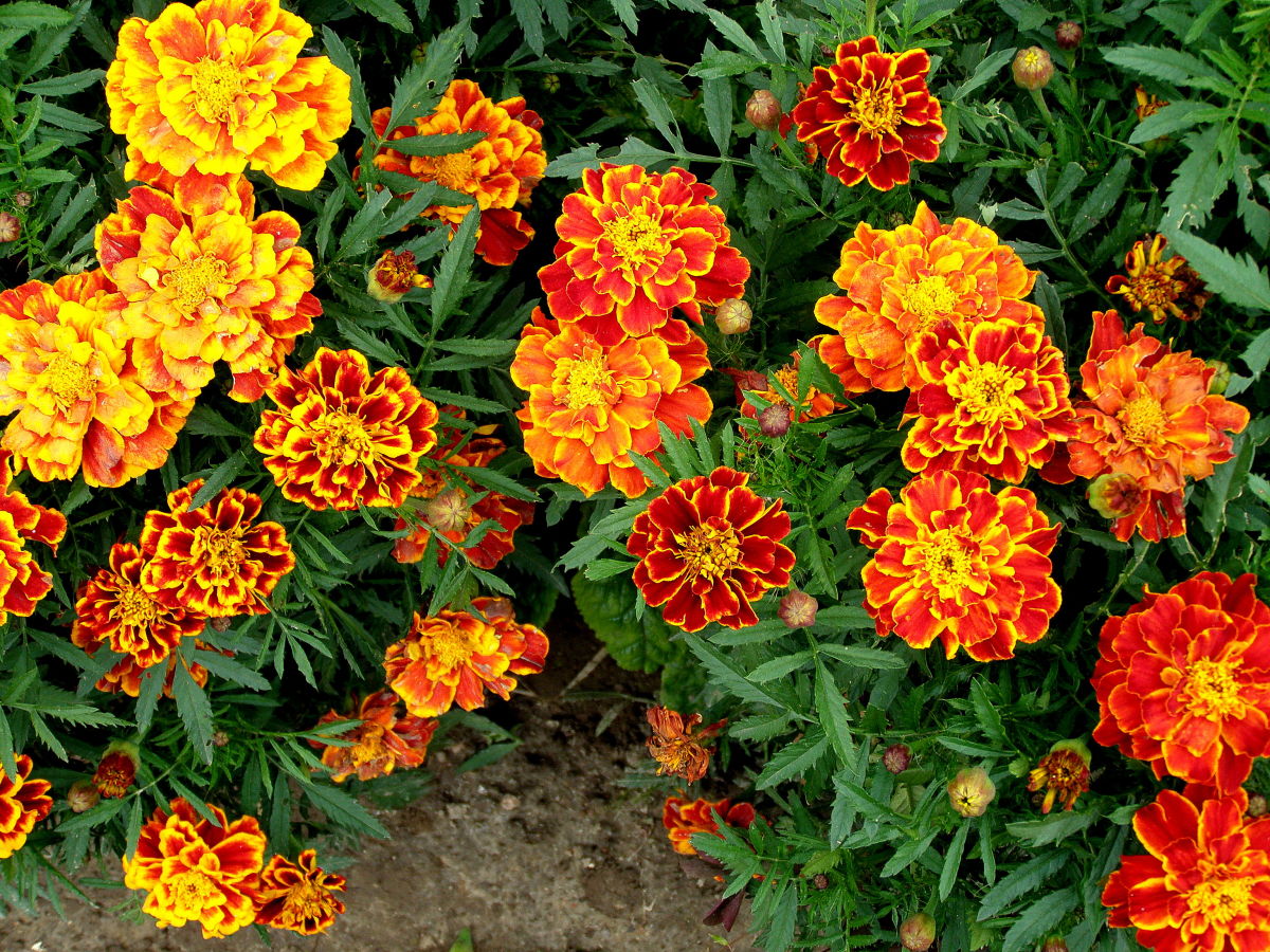 На любой клумбе бархатцы займут доминирующую позицию. В зависимости от высоты сорта их определяют на передний или средний план. Также цветы можно использовать для окантовки участка, посадки вдоль построек и в миксбордере. Стебли высоких сортов придётся подвязывать, чтобы они не заслоняли дорожку.