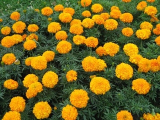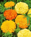 Бархатцы прямостоячие (африканские). Наиболее высокие растения достигают 120 см в высоту. Их разветвленные плотные стебли завершаются махровыми шарообразными соцветиями диаметром до 15 см. В окраске лепестков преобладают оттенки желтого цвета. Растения хороши для срезки. Сорта: