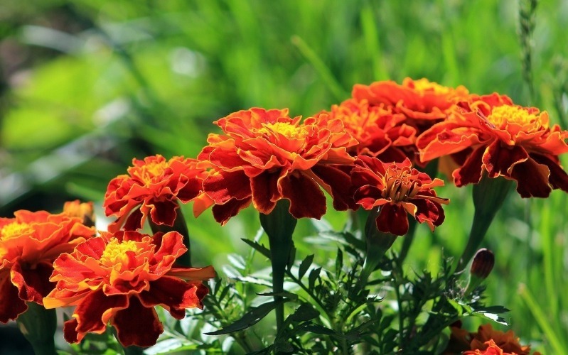 - цветение бархатцев приходится на период с середины июня до середины осени, а именно до первых заморозков;