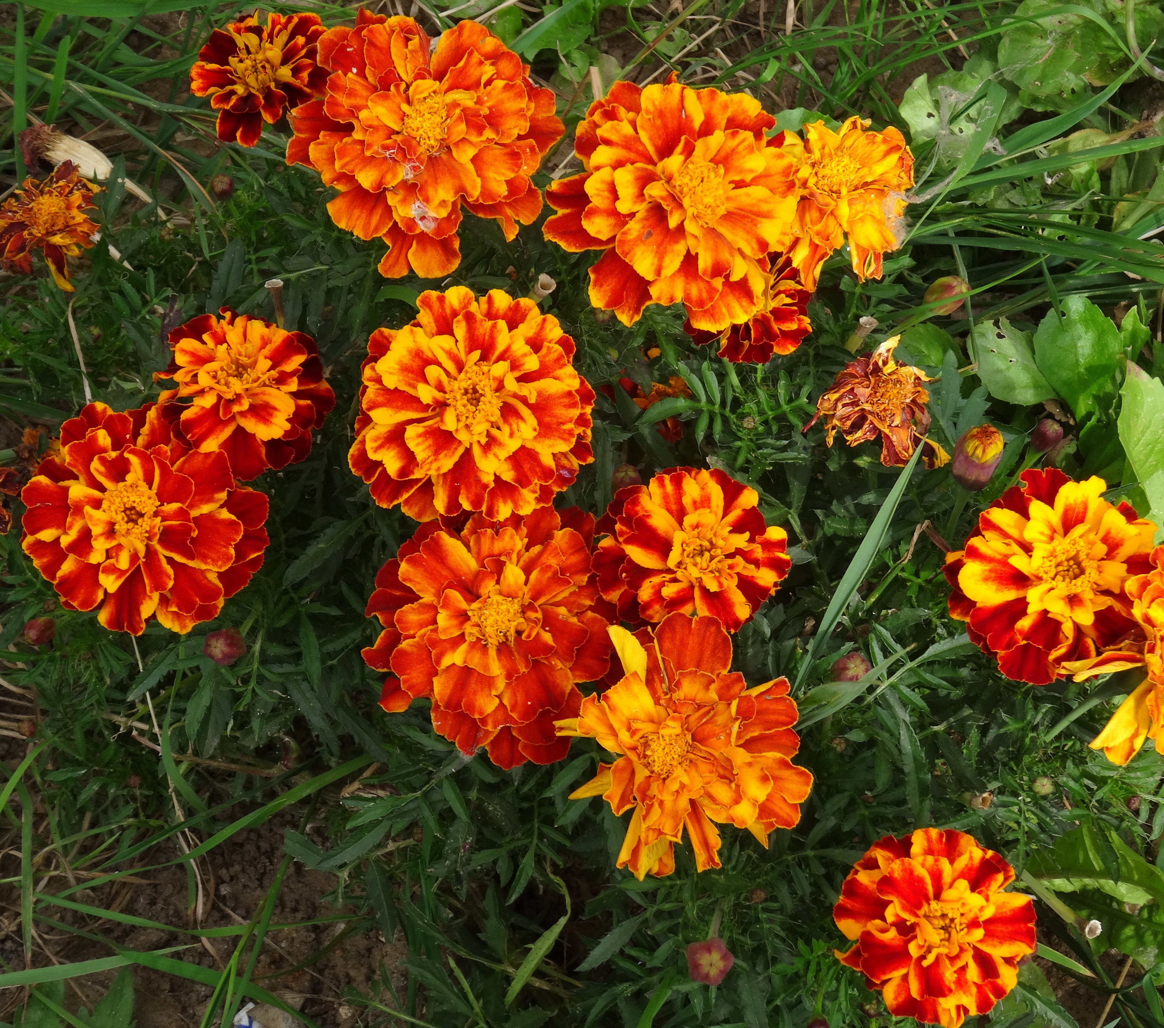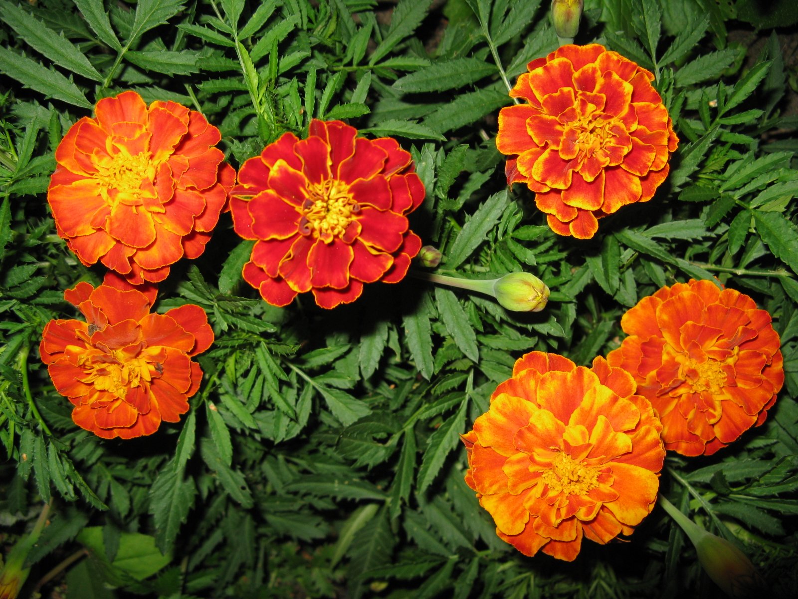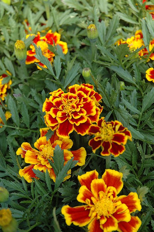Эти бархатцы хорошо ветвятся, сам куст вырастает до 30 см, цветы имеют несколько оттенков.