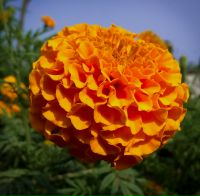 Кустики этого растения очень миниатюрны, всего 25 см, листва ярко-зелёная, густая, цветы оранжевые не большие 6 см в диаметре, махровые.
