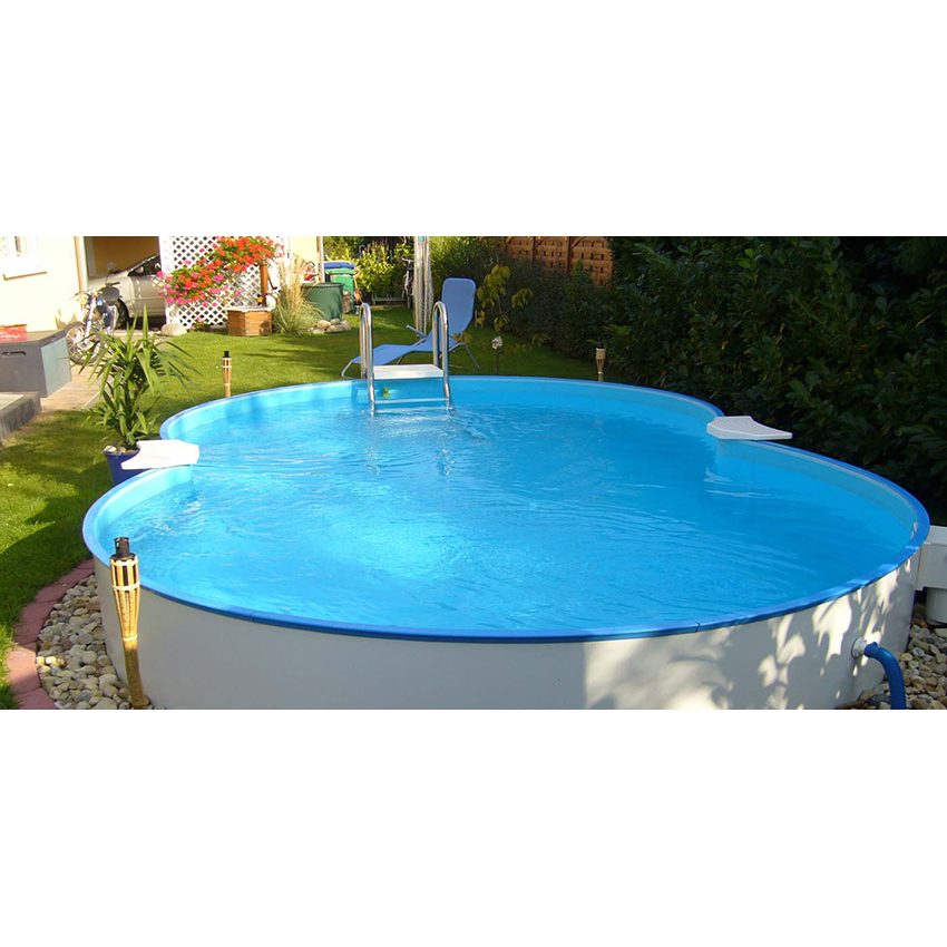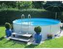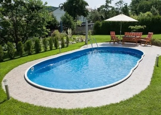 - всесезонные – могут переносить заморозки даже с водой внутри, поэтому их можно не демонтировать на время холодов. Их основное отличие – они имеют по бортам металлическую профилированную стенку (0,8 мм), дополнительно покрытую несколькими слоями полимера или эмали. Благодаря усиленной раме, имеющей дополнительно установленные поперечные балки и подпорки для стенок, и стальному борту создают достаточно большие (до 20 т воды) бассейны круглой или овальной формы. Срок службы – до 15 лет