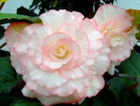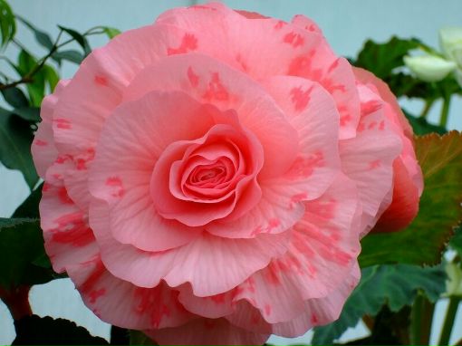 Особенно хороша клубневая бегония Одората Уайт с великолепием снежно-розовых соцветий. Невысокие растения цветут весь сезон крупными, гофрированными цветами, напоминающими лотос.