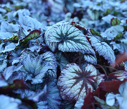 - Корневищные бегонии, наиболее известные своими богато украшенными и окрашенными листьями (те, которые растут из раздутых подземных стеблей, называемых корневищами), легко размножаются черенками листьев.
