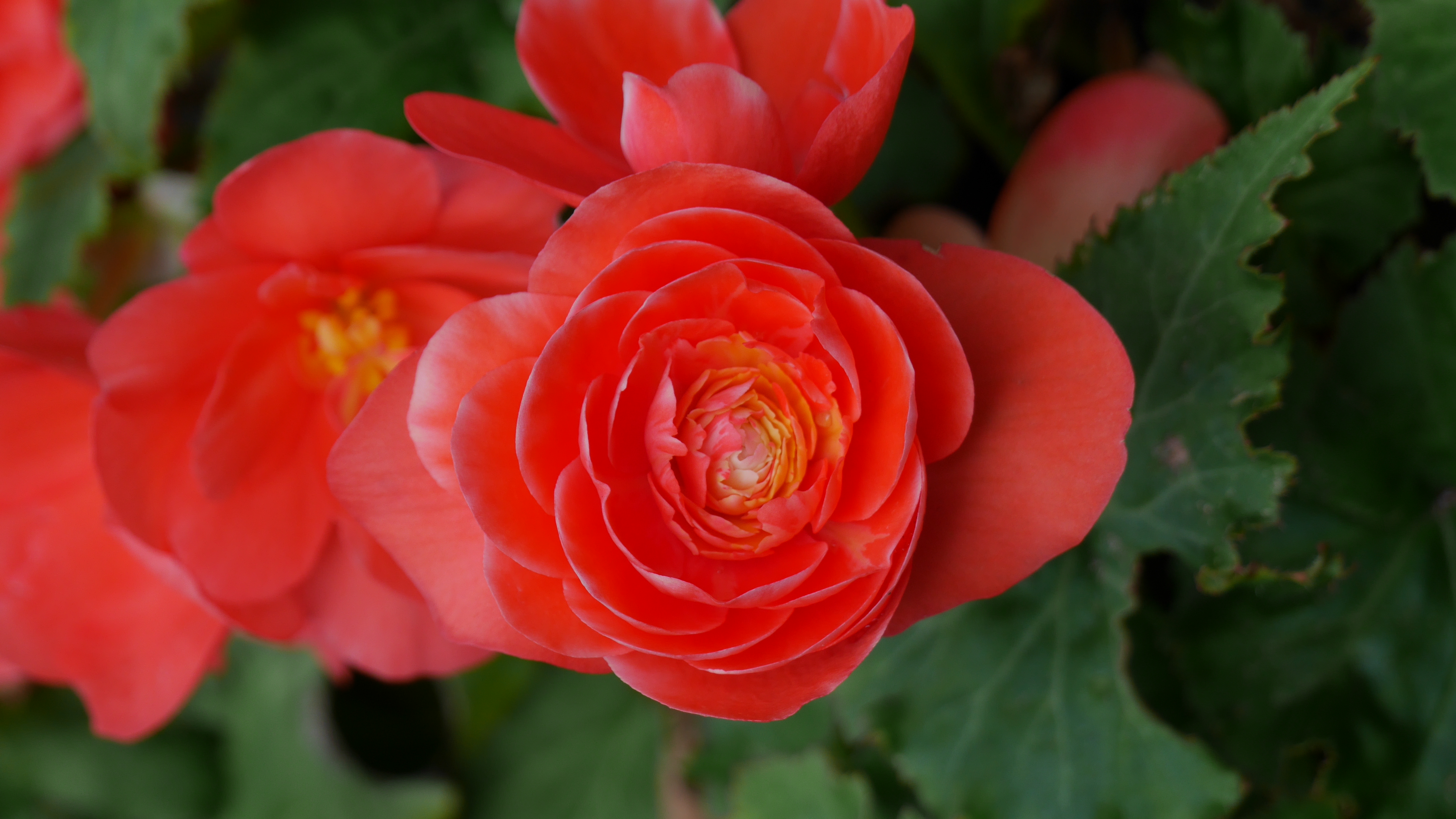 Semperflorens: Этот второй класс с волокнистыми корнями включает однолетние или «восковые» бегонии, которые выращиваются в качестве клумб и продаются миллионами в садовых центрах по всему миру. Восковые бегонии получили свое название от восковых листьев. Они быстро растут, отлично смотрятся при массовом посеве или в комбинации контейнеров, устойчивы к оленям и хорошо себя чувствуют как на солнце (кроме интенсивного, жаркого полуденного солнца), так и в тени. Сорта с листьями бронзового цвета лучше работают в солнечных местах, тогда как сорта с зелеными листьями лучше работают в полуденной тени.