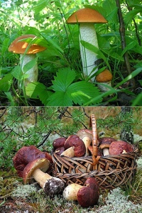 Эти грибы, растущие под разными деревьями, имеют разную окраску шляпки. Под елью вегетируют самые темные боровики, а растущие под сосной имеют красивую красно-коричневую шляпку.