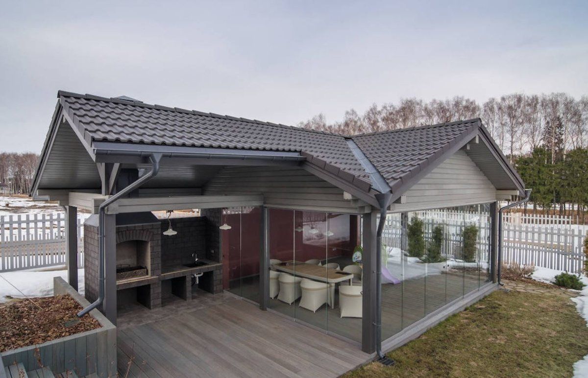 Если загородный дом предназначен для круглогодичного проживания, то летний вариант беседки едва ли будет целесообразным решением.