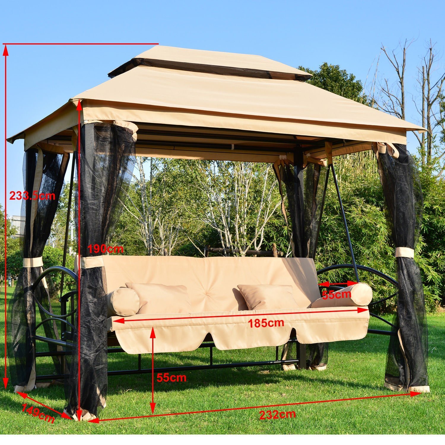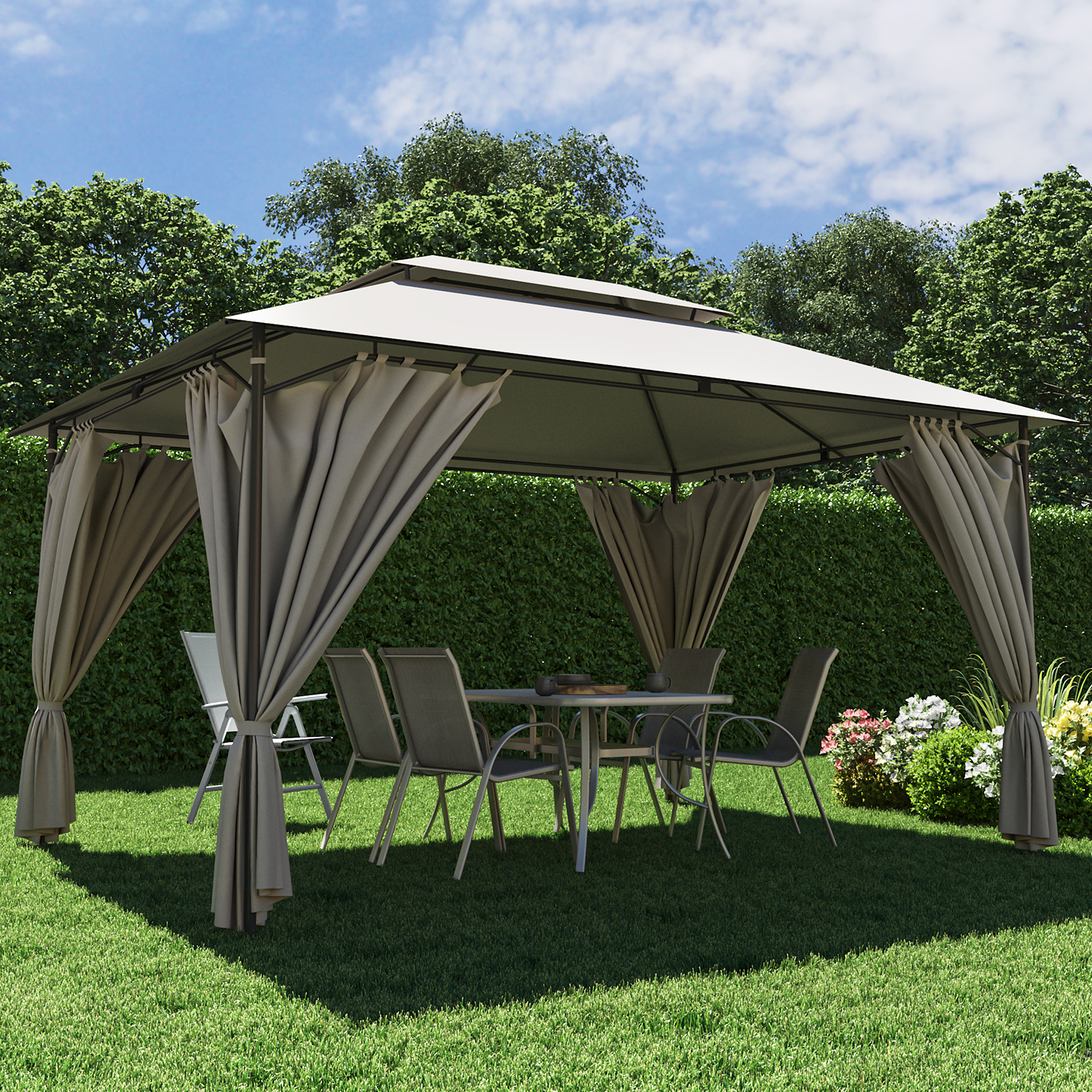 Оцинкованная двойная стальная крыша беседки, установленная на прочном устойчивом к ржавчине алюминиевом каркасе, имеет атмосферостойкое покрытие для долговечности и вентиляцию для оптимального потока воздуха. Занавески из полиэстера и сетка из поликарбонатной сетки защитят вас от вредных ультрафиолетовых лучей, дождя и укусов комаров. Просто отодвиньте сетку, чтобы подышать свежим воздухом и улучшить видимость. Сборка проста и понятна, все необходимое для установки в комплекте. Устраиваете ли вы вечеринки или хотите по-новому взглянуть на свой сад или двор, эта беседка станет прекрасным дополнением к любому месту.