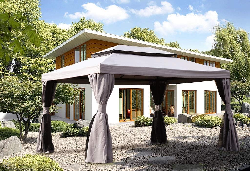 - Создайте привлекательное пространство для собраний с помощью беседки ALEKO с двойной крышей из алюминия и стали с жесткой крышей