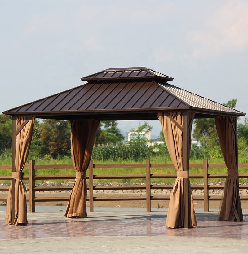 2-уровневая двойная крыша из алюминия и стали с жестким навесом для беседки с москитной сеткой и затененными шторами — 13 x 10 футов