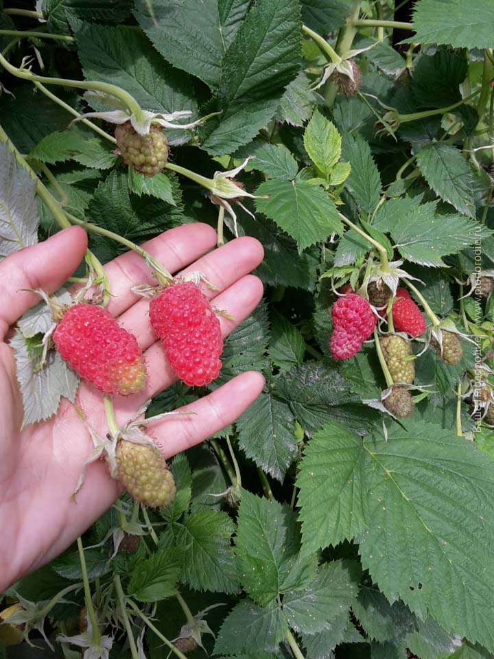 Эта крупноплодная, сладкая ягода имеет двойное время сбора — полностью красную стадию с настоящим вкусом красной малины и стадию перезревания, когда она почти равна черной малине.