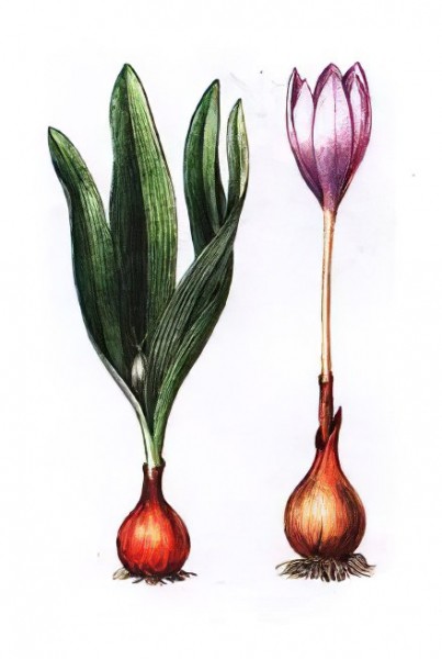 Многолетнее травянистое растение Colchicum представляет собой эфемероид с многочисленными короткими стеблями с крупными удлиненными ланцетными листьями, которые развиваются весной и отмирают к началу лета.Клубнелуковицы покрыты коричневой оболочкой, образующей длинную трубку, покрывающую нижнюю часть растения. Цветение Colchicum обычно происходит осенью, хотя некоторые виды цветут весной — одиночные воронкообразные цветы длиной до 20 см поднимаются из земли вместе с околоцветником, выросшим в трубке, большая часть которой остается под землей.