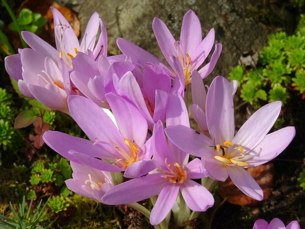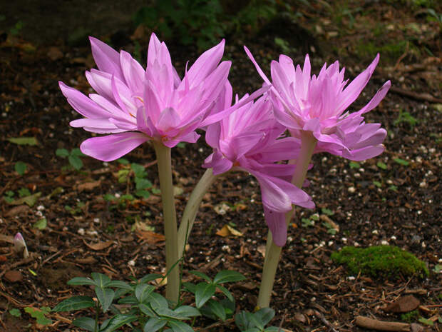 Уход за цветками colchicum совершенно не сложен: увлажнение почвы необходимо только в период цветения, но только в случае жары и засухи в это время.В любое другое время поливать колхикум не стоит, хватит естественных осадков — переувлажнение ему категорически противопоказано.