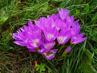 Безвременник веселый или ОсенникСамая прекрасная часть растения — цветы. Крупные, яркие, в форме бокала. Появляются в сентябре, и цветут около 3 недель, даже во время заморозков, не помеха им даже снежный покров.